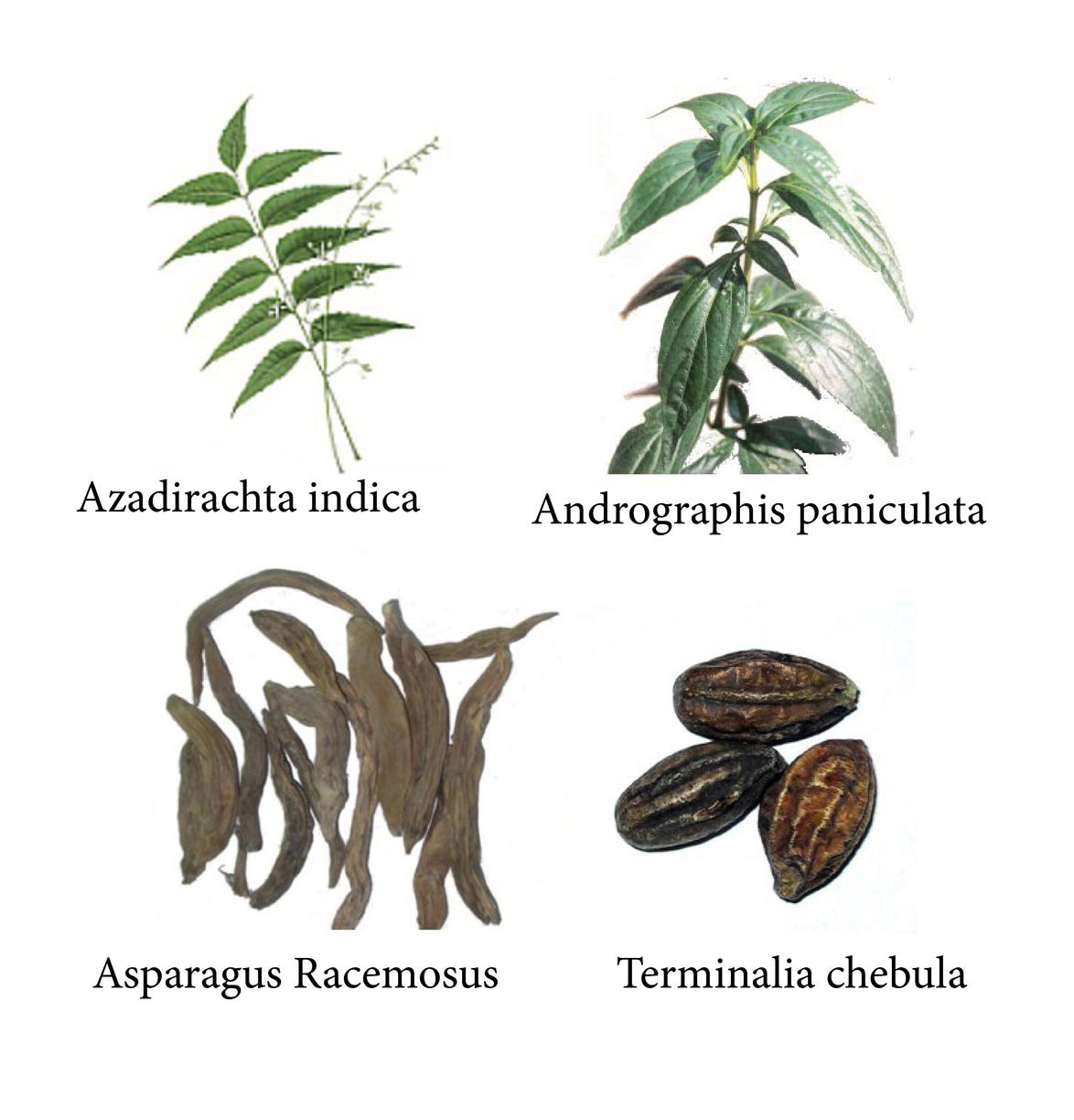 Diese Kräutermischung besteht zu jeweils gleichen Teilen aus Andrographis Kraut, Neemblatt, Spargelwurzel und Terminalia Frucht im Verhältnis 1:1:1:1.